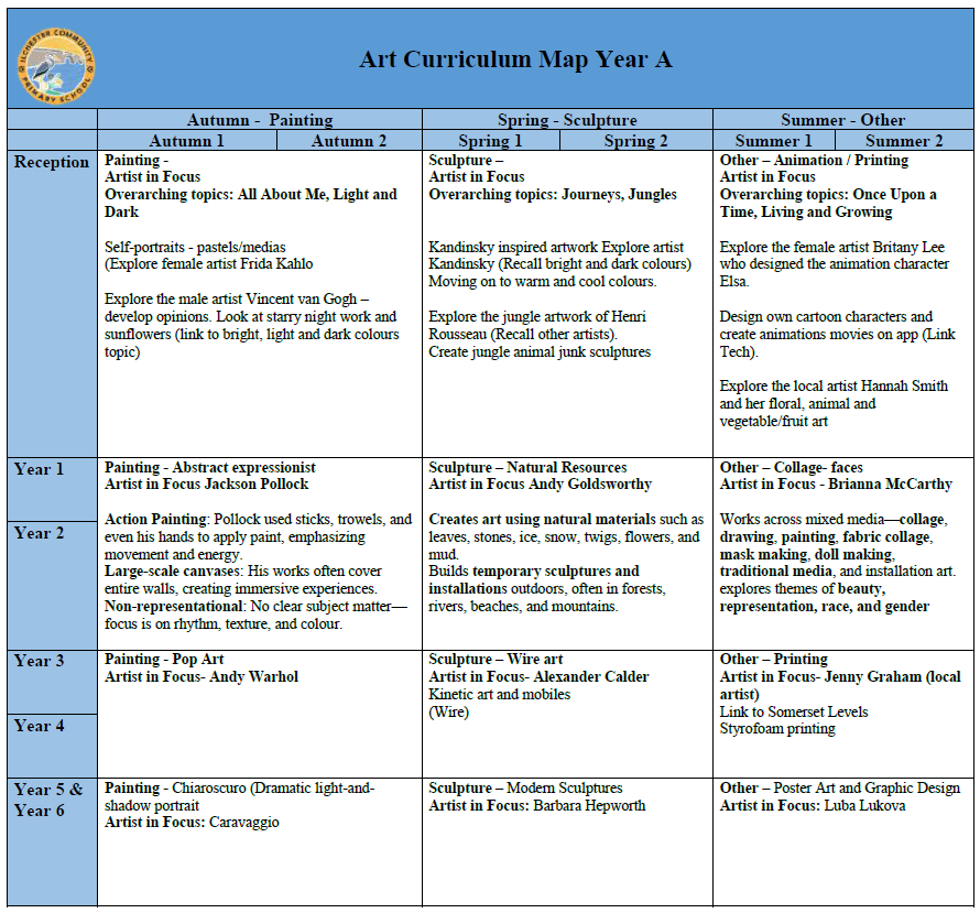 Our intent is to develop children who think like artists. We provide a curriculum that is rigorous, innovative, and inspiring, enabling every child to reach their full creative potential. Through art, children learn how creativity reflects and shapes history, culture, and society.